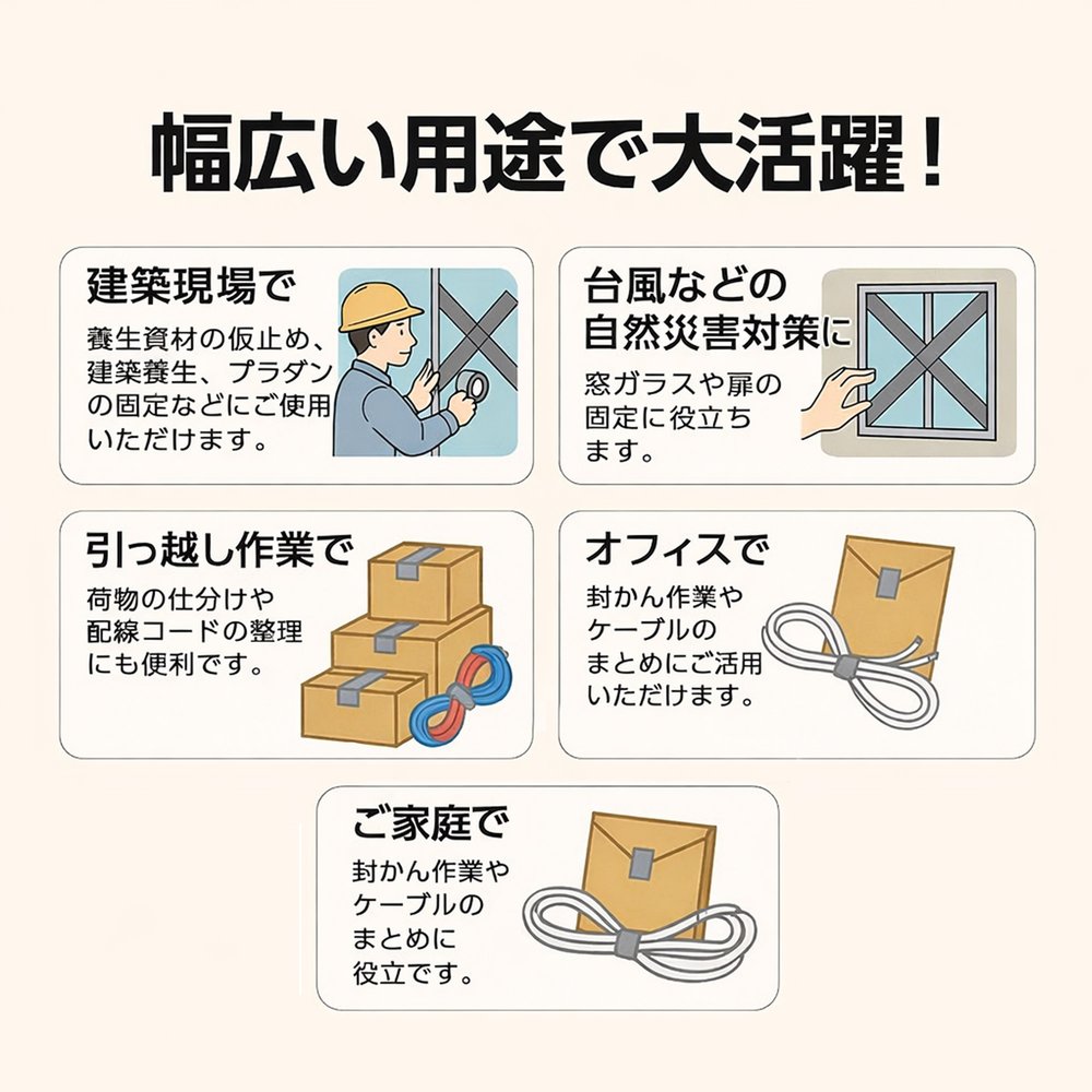 引っ越しや建築作業の仮止めなどに。