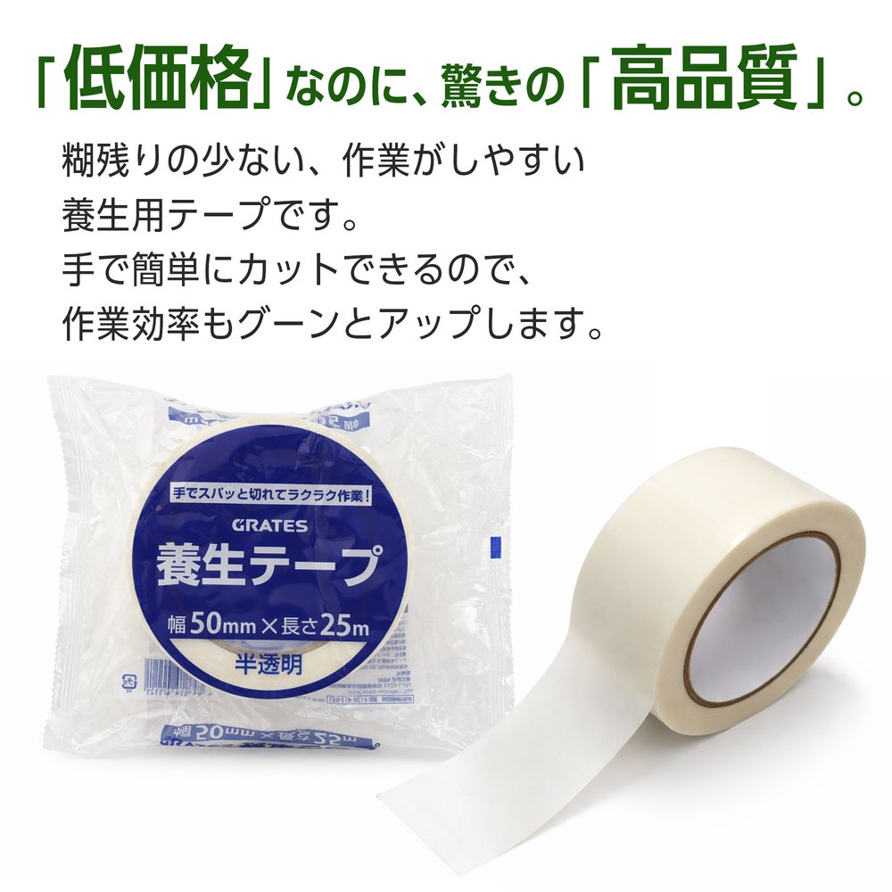 GRATES 養生テープ 50mm×25m 半透明 30巻について