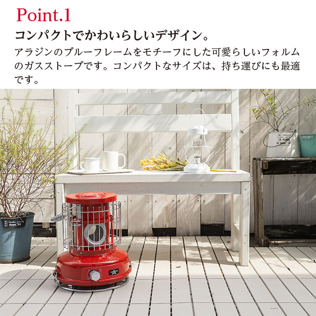 アラジンの代名詞でもある「ブルーフレーム」をモチーフにデザインされたガスストーブです。
