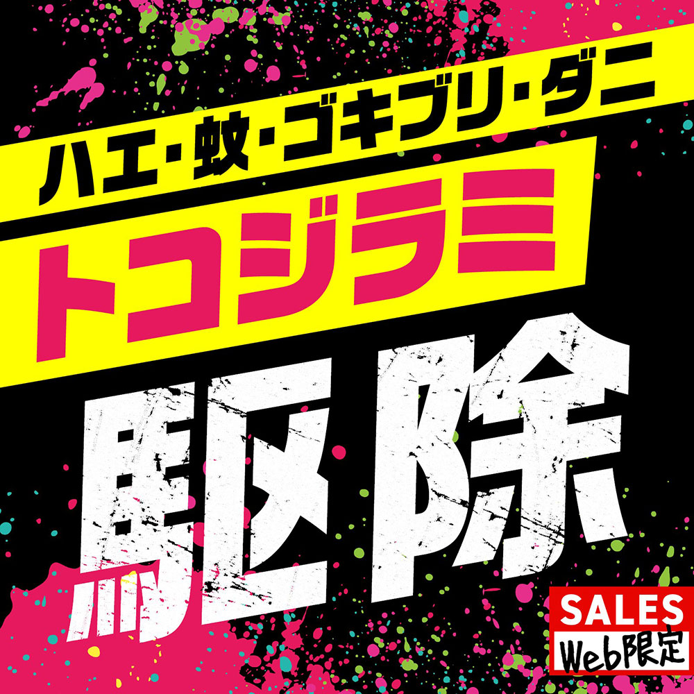 ハエ成虫、蚊成虫、ゴキブリ、ノミ、トコジラミ(ナンキンムシ)、イエダニ、マダニの駆除