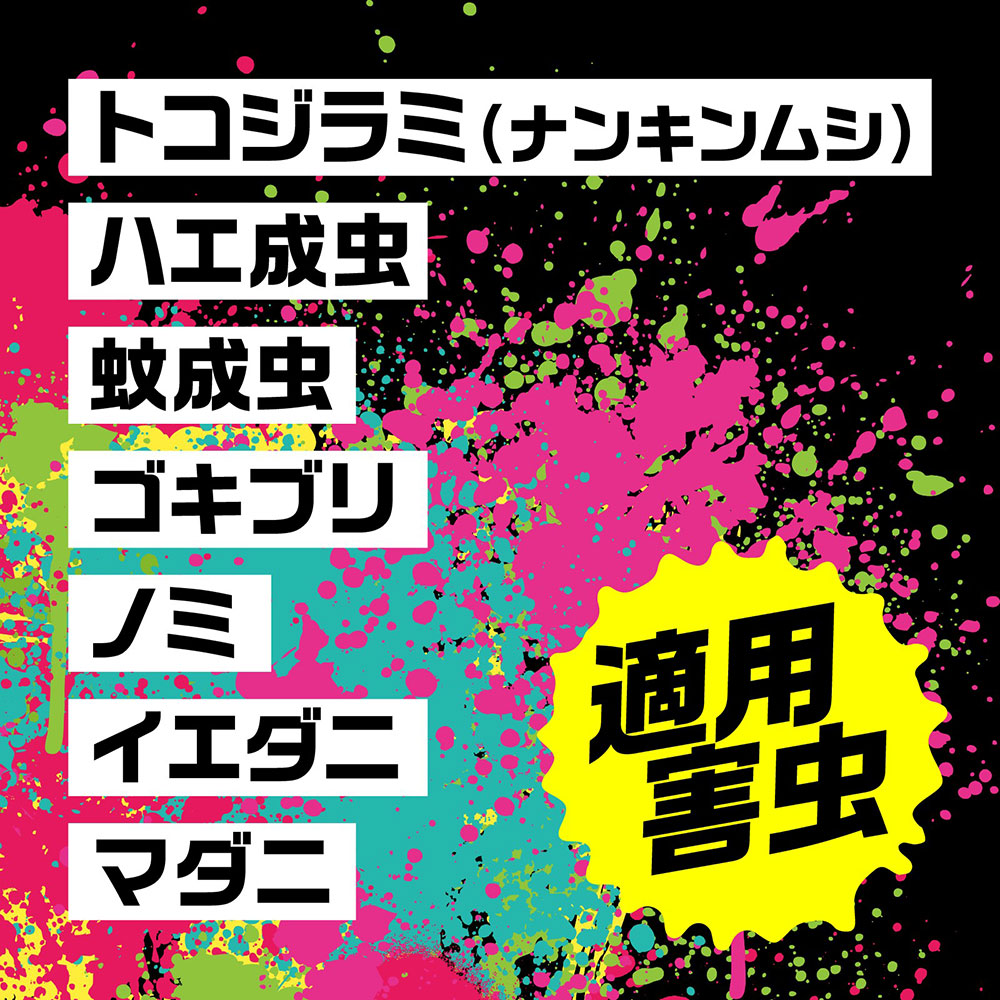 ゴキブリ、ノミ、トコジラミ(ナンキンムシ)、イエダニ、マダニには直接噴射してください。