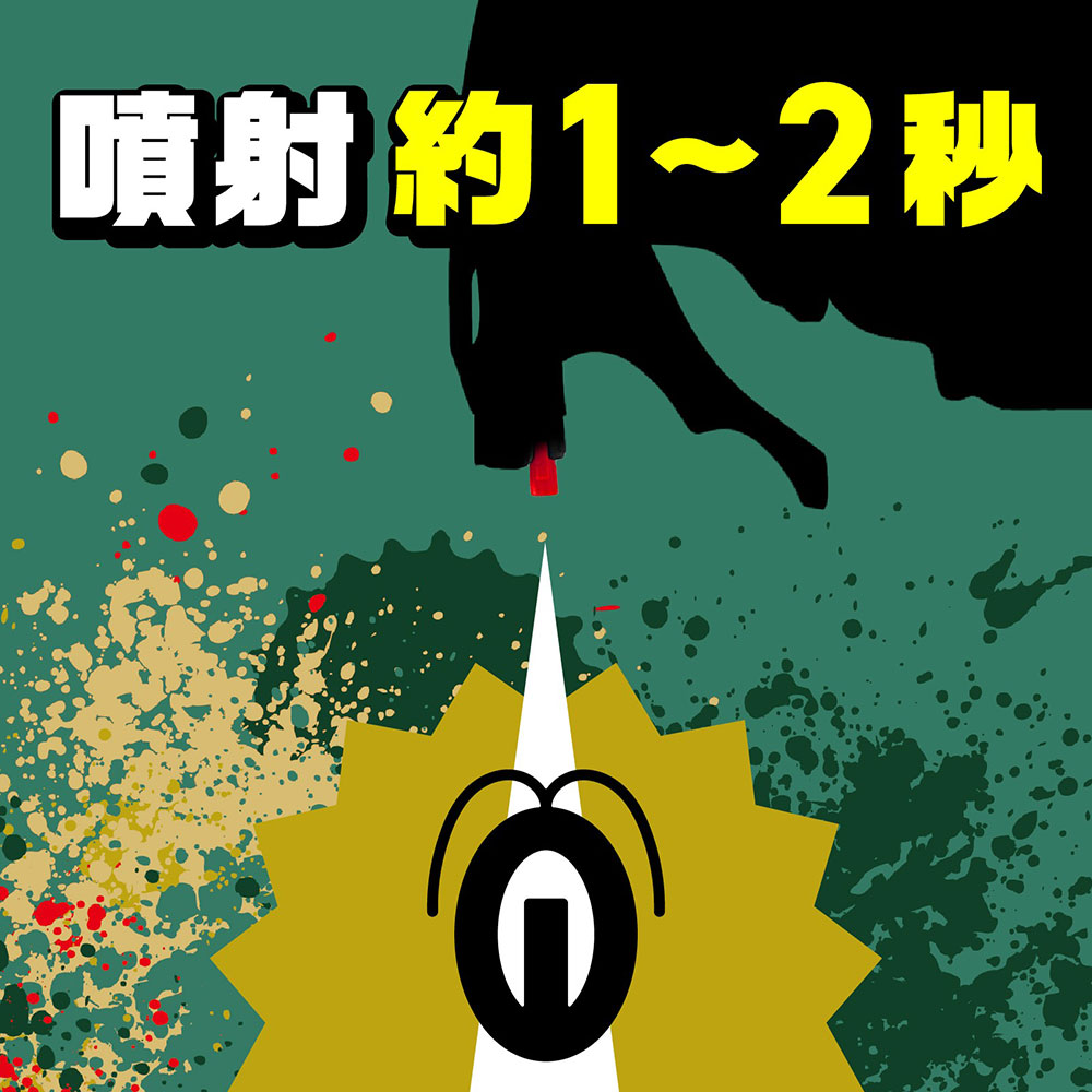 ・ゴキブリの逃げ込んだすき間には約1秒噴射してください。すき間より出てきたゴキブリには更に上記の量を再度直接噴射してください。