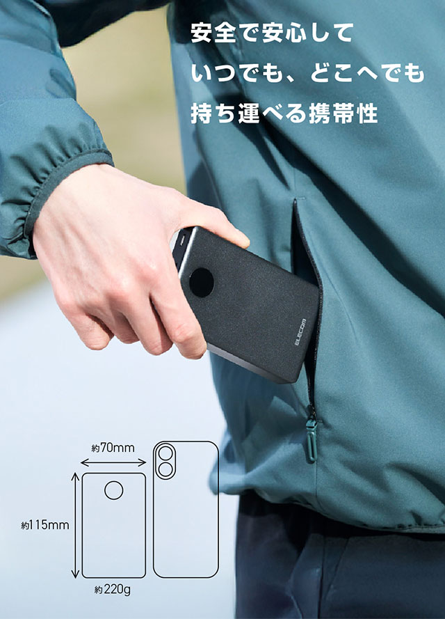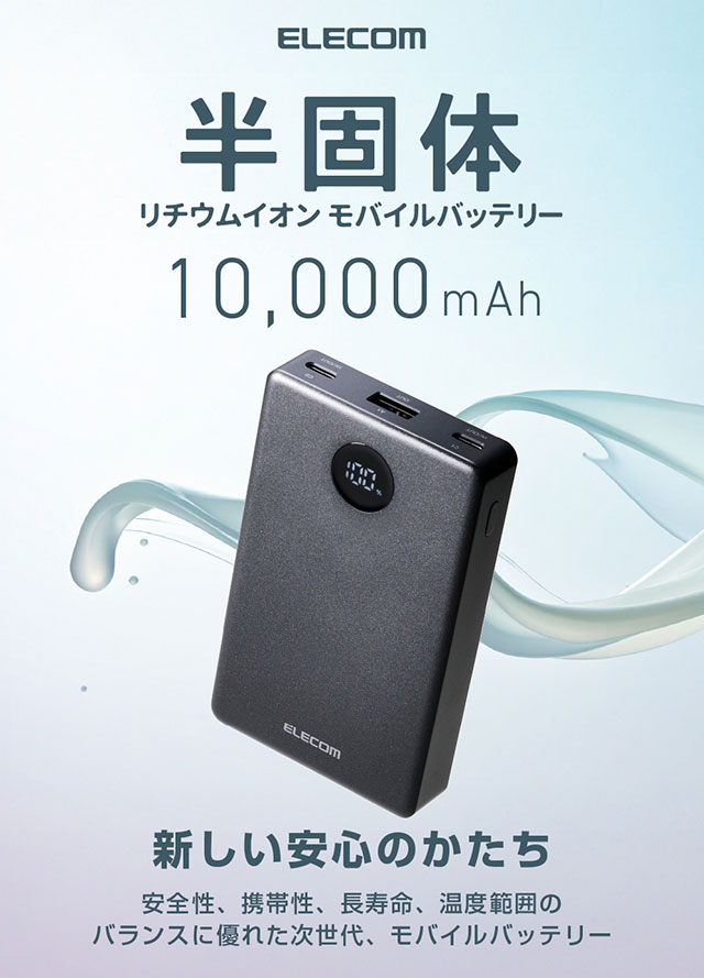 半固体リチウムイオン電池を採用した次世代モバイルバッテリーです。
