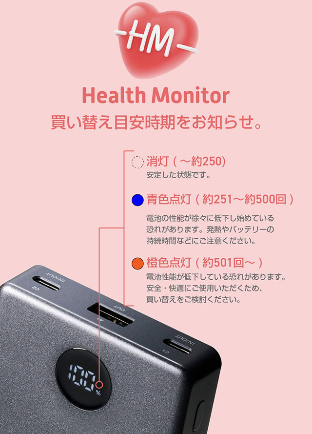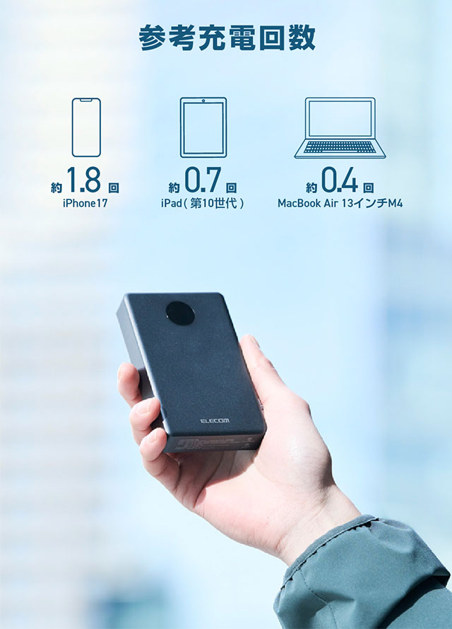 さらに、バッテリー残量はLEDパネルに1%刻みで表示されるので、必要なタイミングで効率よく充電できます。