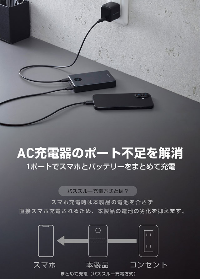 ・電源出力側:USB Type-Cポート×2、USB-Aポート×1