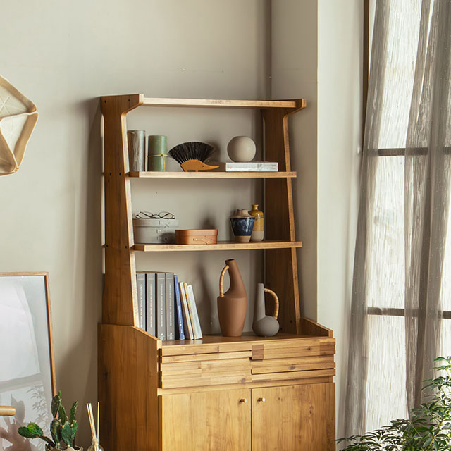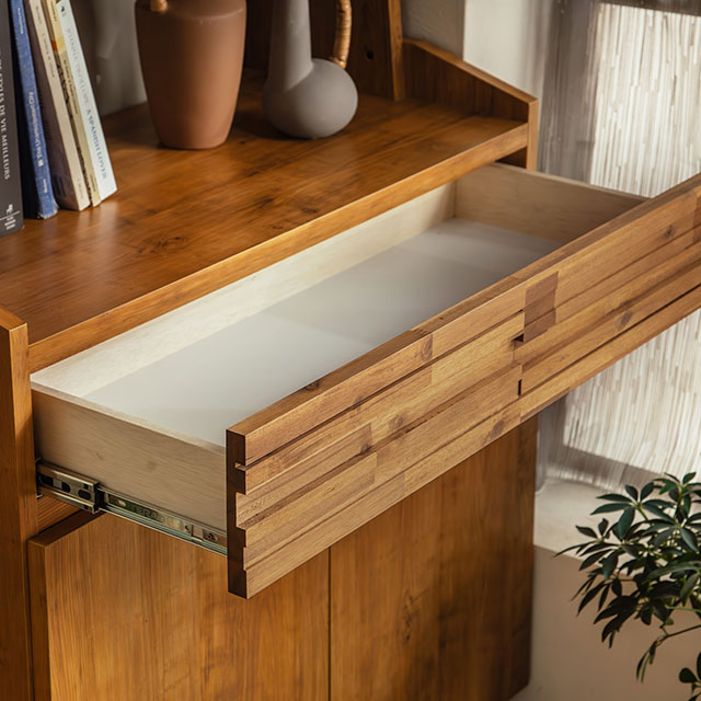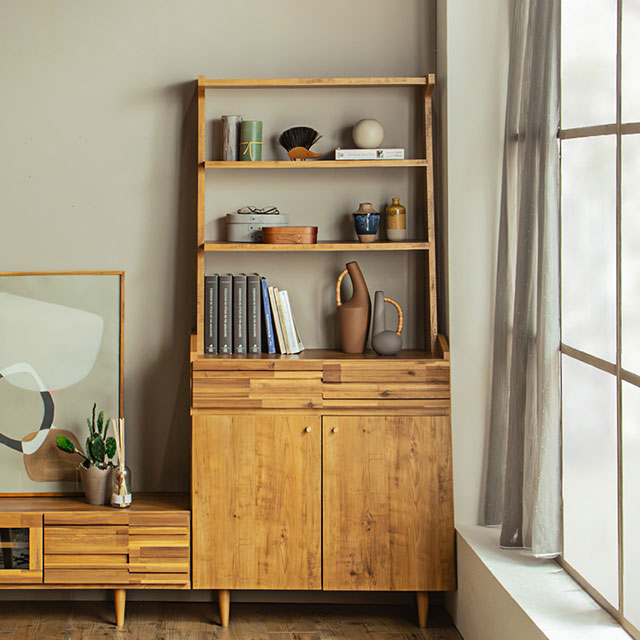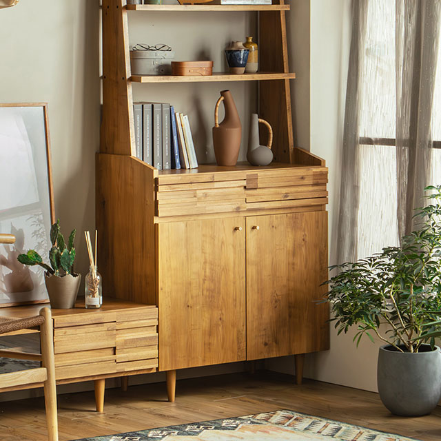 真鍮の取っ手やアカシアの前板を使用し、どこか懐かしくも感じられるラスティックな印象です。