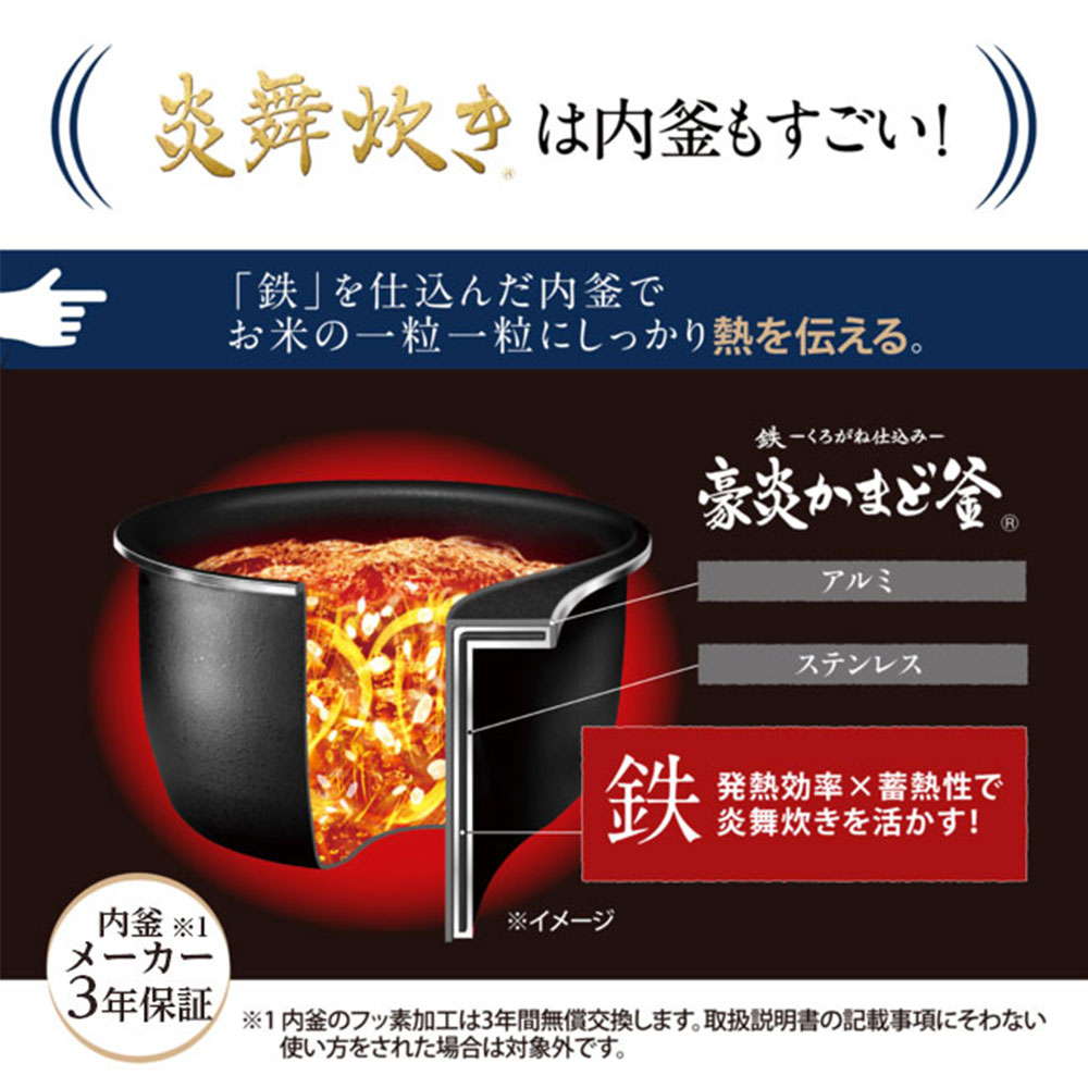 「鉄-くろがね仕込み-豪炎かまど釜」は炎舞炊きの集中加熱を活かす、鉄を仕込んだ内釜です。