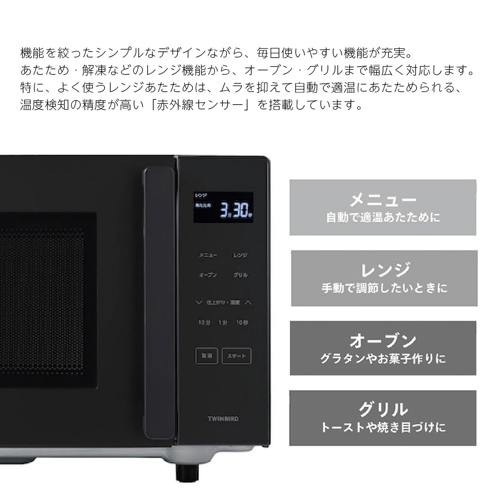 ツインバード センサー付フラットオーブンレンジ 16L ブラック DR-E216Bについて